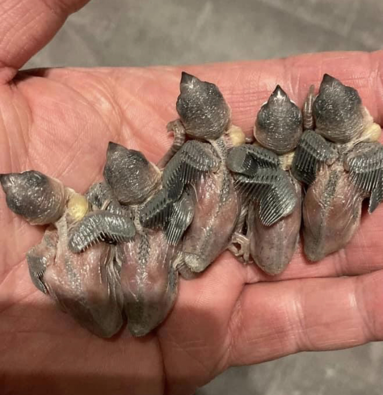 Once the eggs have hatched, I resume giving the parents egg food and frozen pinkies and buffalo worms. I do this gradually, as the chicks are still very small. After a few days, I increase the amount of egg food, pinkies, and buffalo worms. The chicks grow quickly and need the extra protein to develop properly.