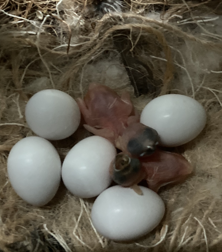 The birds begin incubating after laying the second-to-last egg. After about 4 days of incubation, it becomes clear whether the eggs are fertile. If the eggs are infertile, I let the pair finish their cycle and then remove the eggs to encourage the pair to start again. If the eggs are fertile, you have two options: either let the pair incubate the eggs and raise the chicks themselves (natural brooding), or allow Japanese mew finches (foster parents) to take over the task. I will continue here with the process of natural brooding.