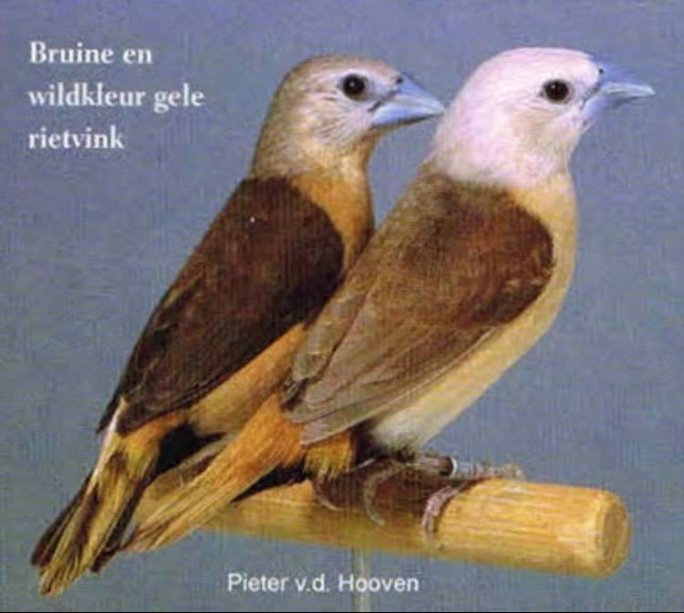 Hieronder een foto van een aantal jaren geleden van een wildkleur gele rietvink en een bruine gele rietvink. Bij de bruine mutatie is de kopkleur erg mooi licht van kleur. De bruine mutatie is ondertussen weer verdwenen.