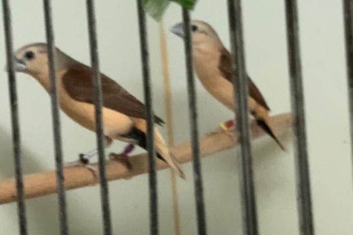 A photo from a few years ago of a wild-type Lonchura flaviprymna and a Lonchura flaviprymna. In the brown mutation, the head color is very beautifully light.